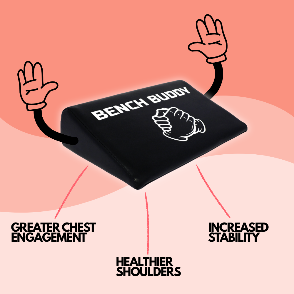 Bench day should grow your chest, not punish your shoulders. Bench Buddy helps place you into a strong, natural arch allowing for: