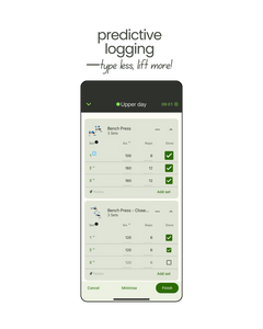 - Smart Sets – predicts your next weights and reps, so you’re not doing maths between sets