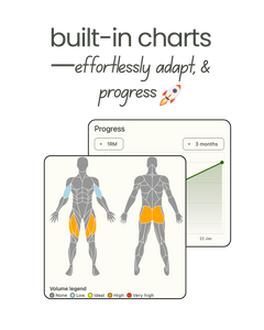 - Progress Tracking – PBs, volume, and trends all in one place